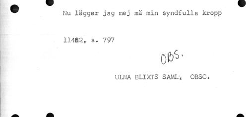 //// ® Nu lägger jag mej mä min syndfulla kropp //// 11482, s * 797 //// ULMA BLIXTS SAML e OBSC. ////