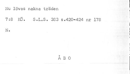//// Nu lövas nakna träden | //// 7:8 KÖ. S.L.S. 383 s.420-424 nr 178 //// I //// i //// N* I //// i ¦ //// i //// ÅBO ////