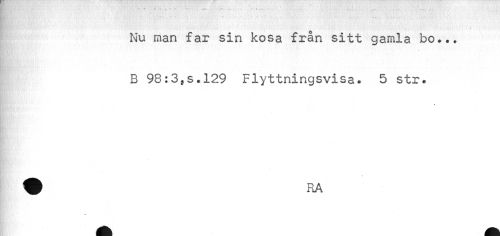 //// n ' / ..... //// O //// Nu man far sin kosa fran sitt gamla bo... B 98:3fs.l29 Flyttningsvisa. 5 str. //// ¦if VÄ--B m »i ¦ : //// % ////