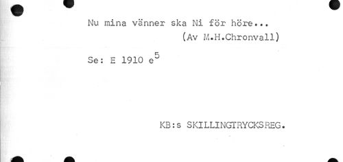 //// Nu mina vänner ska Ni för höre... //// (Av M.H.Chronvall) //// Se: E 1910 e5 //// KB: s S Kl LLI NGT RYCKS REG. ////