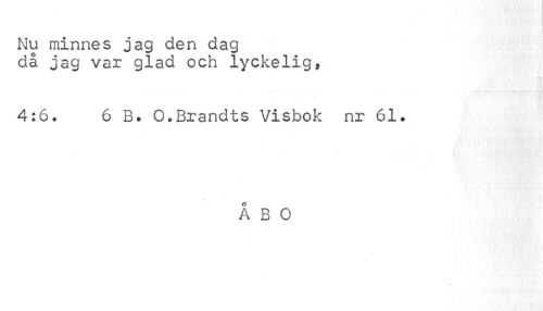 //// Nu minnes jag den dag //// då jag var glad och lyckelig* //// 4:6* 6 B. O.Brandts Visbok nr 61. //// ÅBO ////