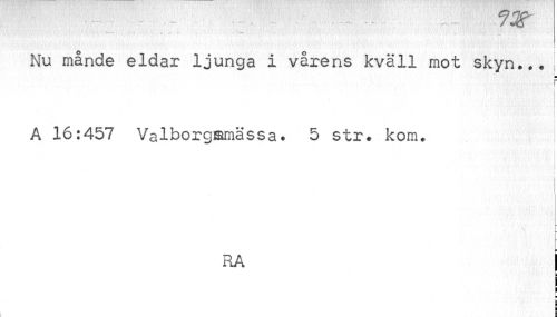 //// Nu månde eldar ljunga i vårens kväll mot skyn... I //// i //// i //// A 16:457 Valborg&mässa. 5 str. kom. //// i //// N ~ //// RA I //// k //// C ¦ //// | ////