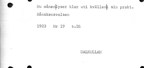 //// Nu månen|lyser klar uti kvällen^, sin prakt. Månskensvalsen //// « //// 1923 Nr 19 s.26 //// DALKULLAN ////