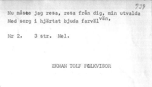 //// Nu måsée jag resa» resa från dig» min utvalda //// * * //// Yän //// Med sorg i hjärtat bjuda farväl * //// \ //// Nr 2. 3 str. Mel. //// EKMAN TOLF FOLKVISOR ////