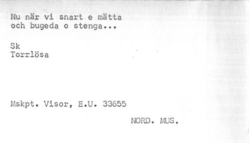 //// Nu när vi snart e mätta och bugeda o stenga*** //// Sk //// Torrlösa //// Mskpt. Visor, E.U. 33655 //// NORD. MUS. //// ts ////