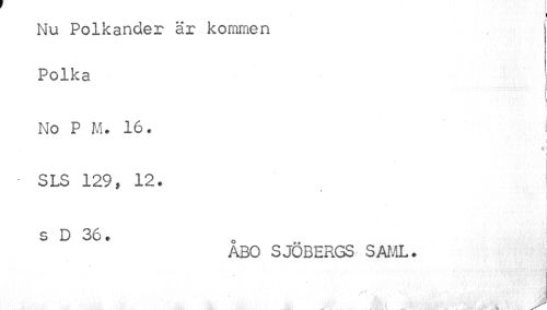 //// I //// Nu Polkander är kommen Polka //// [ //// No P M. 16. i //// i //// t ! //// - SLS 129, 12. //// * //// l //// s D 36. //// ABO SJÖBERGS SAML. //// ¦•y> 3 //// Ak //// • , - ( : i J* ////