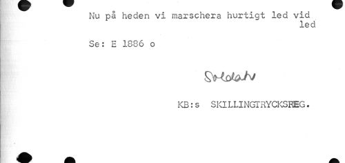 //// Nu på heden vi marschera hurtigt led vid //// led //// Se: E 1886 o //// glhtDl&Jv //// KB:s SKILLINGTRYCKSEEG. ////