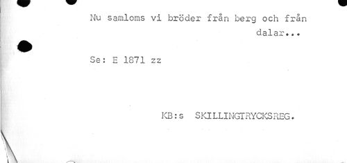 //// — //// Nu samloms vi bröder från berg och från //// ci313T • * • //// m ™ //// Se: E 1871 zz //// i"' //// KB:s SKILLINGTRYCKSREG. ////