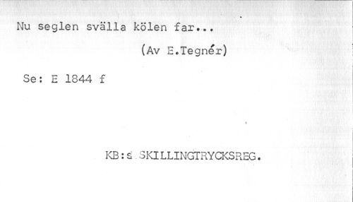 //// Nu seglen svälla kölen far.-.. //// (Av E.Tegnér) i //// Se: E 1844 f //// i //// I //// i //// 1 } l l i .'v ?! //// KB:£.SKILLINGTRYCKSREG. ////
