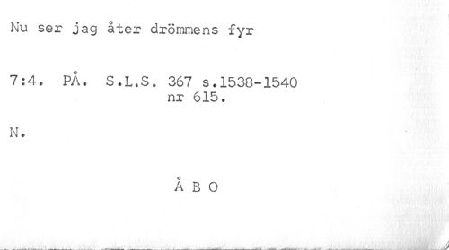 //// ! //// Nu ser jag åter drömmens fyr //// 7:4. PÅ. S.L.S. 367 s.1538-1540 //// nr 615. //// N. //// ÅBO //// ---—^/-—^Ty------ -ii*.. W» —--->-------. ------- . --itf-—-------v---1UM-------—Ä---ti,---.......- —....—...----jj^ ////