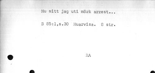 //// Nu sitt jag uti mörk arrest... //// , % //// B 85:1,s.30 Huarvisa. 8 str. ////