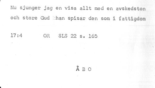 //// Nu sjunger jag en visa allt med en avskedston och store Gud :han spisar den som i fattigdom //// 17:4 OR SLS 22 s. 165 //// x //// ÅBO ////