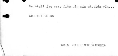 //// Nu skall jag resa från dig min utvalda vän... Se: £ 1898 ss //// ^ KB:s SKILLINGTRYCKSREG. ////