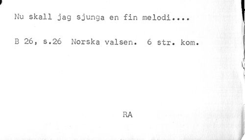 //// Nu skall jag sjunga en fin melodi.... | //// B 26, s.26 Norska valsen. 6 str. kom. I //// i //// RA | //// //// //// //// ///. ' . . , . • .....>A'u: nui^lnlJs ¦ \W ////