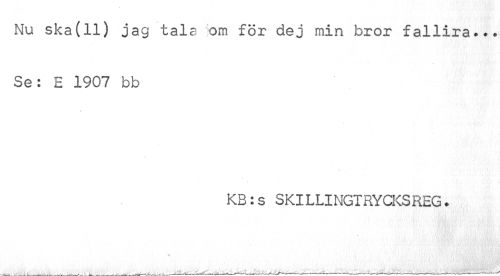 //// Nu ska(11) jag tals om för dej min bror fallira... //// Se: E 1907 bb //// t //// KB:s SKILLINGTRYCKSREG. ////