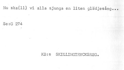 //// Nu ska(ll) vi alla sjunga en liten glädjesång... Se:G 274 //// t //// KB:s SKILLINGTRYCKSREG. ////