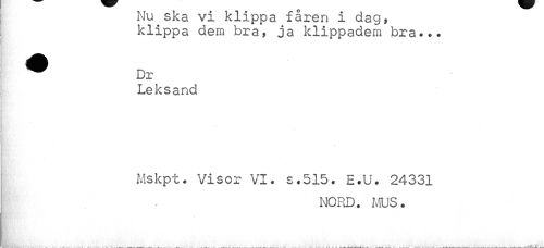//// Nu ska vi klippa faren i dag» klippa dem bra» ja klippadem bra*.. //// ^ Dr //// Leks nd //// Mskpt. Visor VI. s.515. E.U. 24331 //// NORD. MUS. //// \ //// M____ . _ _ .... _____ .. ...... ___*_____ - . -.....- - ^^----—- - .....- * - —— — * —- ------¦----—----- ////