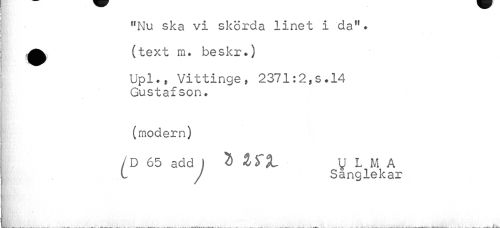 //// "Nu ska vi skörda linet i da"* ^ (text m. beskr*) //// Upl*, Vittinge, 2371:2,s.14 Gustafson» //// (modern) //// /D 65 add ) % L V L M A //// L J Sanglekar //// ___ _ _ _____ _____. ____. __ ___ „._ K___j. _(-,— _.V___^__¦ ___ : _ - - -- . -----_ —---" . . -r-.--— - - - -----~ ----A__ ////