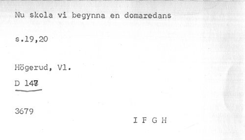 //// Nu skola vi begynna en doraaredans s.19,20 //// ; i - //// Högerud, VI. D 143 //// 3679 //// I F G H ////