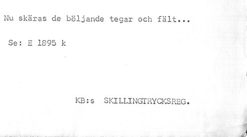 //// Nu skäras de böljande tegar och fält... //// i //// Se: E 1895 k //// * I //// KB:s SKILLINGTRYCKSREG. //// .......'.... . m ////