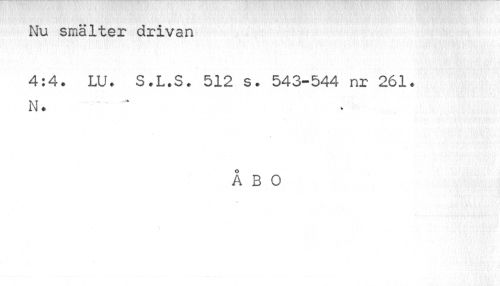 //// • J*i V ' '. >. K . ¦ ~ ' . ' i /«,'. 1 I JtCJffi,; J U fft //// Nu smälter drivan //// 4:4. LU. S.L.S. 512 s. 543-544 nr 261. //// N. - * //// ÅBO //// I» ////
