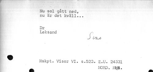 //// — • .... //// Nu sol gått ned, nu är det kväll.. • //// Dr //// Leksand //// J (Mk^ //// ® Mskpt. Visor VI. s.523. E.U. 24331 //// NORD. MfcJS. ////