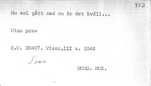 //// 7 SA //// Nu sol gått ned nu är det kväll..* //// Utan prov i //// E.U. 20407. Visor,111 s. 1048 //// r //// NORD. MUS. //// I //// i ////