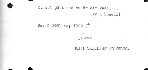 //// ® Nu sol gått ned nu är det kväll... //// (Av L.Lunell) //// Se: E 1901 ee; 1902 f4 //// J) u-t^o KB:s SKlLLINGTRYCKSREG. ////