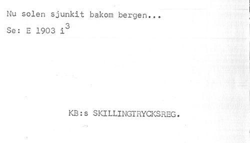 //// Nu solen sjunkit bakom bergen... //// Se: E 1903 i3 1 //// l I //// KB:s SKILLINGTRYCKSREG. ////