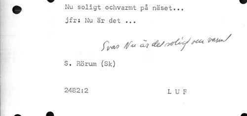 //// ^ Nu soligt ochvarmt på näset... //// jfr; Nu är det ... //// S. Rörum (Sk) //// 2482:2 L U F ////
