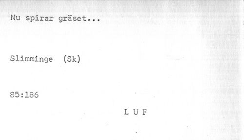 //// Nu spirar gräset... //// Slimrainge (Sk) 85:186 //// LUF //// > ////