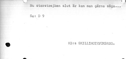//// Nu storstrejken slut är kan man gärna säga... Se: D 9 //// a KB:s SKILLINGTRYCKSREG. //// « ////