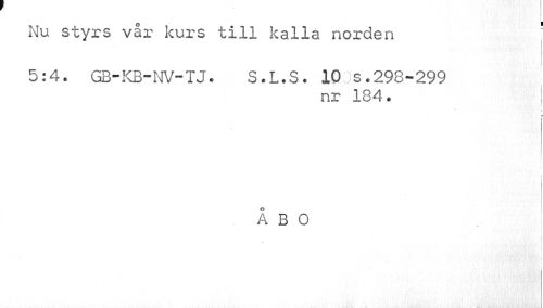 //// Nu styrs vår kurs till kalla norden ; //// 5:4. GB-KB-NV-TJ. S.L.S. 10 s.298-299 //// nr 184. //// f ta //// ÅBO , I //// i ( //// i i //// • r ////