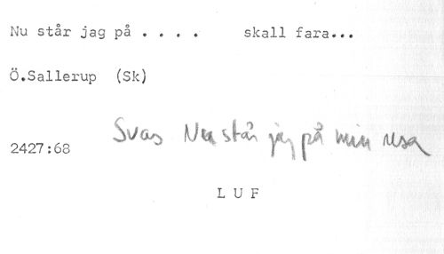 //// Nu står jag på . . . . skall fara... Ö.Sallerup '(Sk) //// 2427:63 ^ ^Uyt^pfl** ^ //// L U F //// % //// •; i ////