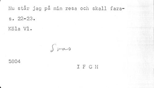 //// Nu står jag på min resa och skall fara-s. 22-23. Kola VI. //// S: //// J V-o-^i //// 5804 //// I F G H ////