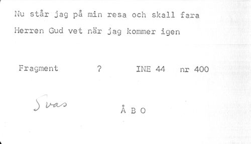 //// Nu står jag på min resa och skall fara //// Herren Gud vet när jag kommer igen //// Fragment ? INE 44 nr 400 //// \ IHX/Z //// J A B 0 ////