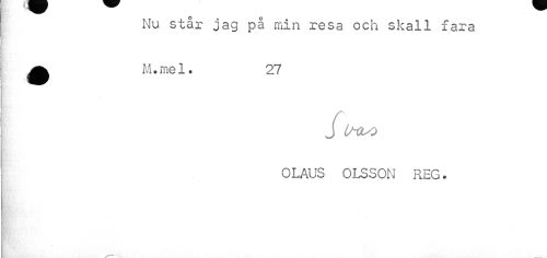 //// Nu står jag på min resa och skall fara ^ M.mel. 27 //// jl/HO OLAUS OLSSON REG. //// ¦ ////