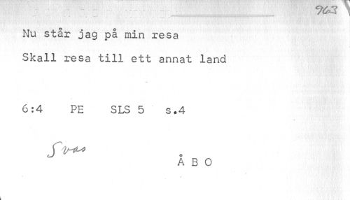 //// .......76»4 \ //// Nu står jag på min resa Skall resa till ett annat land //// 6:4 PE SLS 5 s.4 //// JV** //// A B O ////