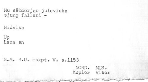 //// Nu såhbörjar julevicka //// sjung falleri - //// Nidvisa Up //// Lena sn //// N.M. E.U. mskpt. V. s.1153 //// NORD? MUS. Kopior Visor ////