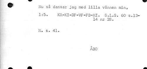//// • J //// v //// Nu så dansar jag med lilla vännen min» //// 1:5. KR-KI-DF-VF-FB-HI. S.L.S. 60 s.13- //// 14 nr 28. //// N. s. 41. //// ÅBO //// $ ////