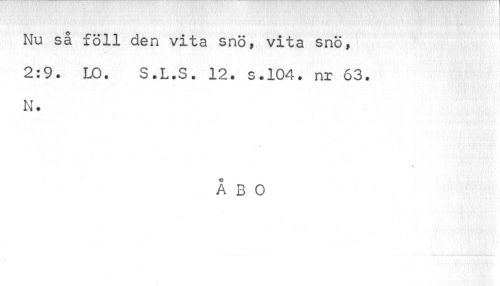 //// I //// • .'v • • ¦•"¦ ¦¦.'.-1-:' ¦¦ v ,, "i / • •' P.' W ) I //// Nu så föll den vita snö, vita snö, 2:9. LO. S.L.S. 12. s.104. nr 63. N. //// % //// ÅBO ////