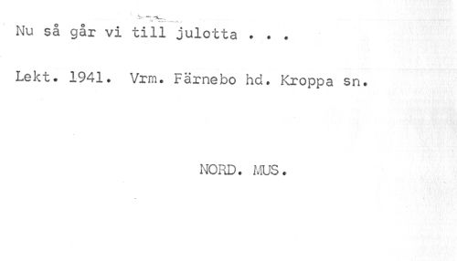 //// t.' //// ------ ....,„, //// Nu så går vi till julotta * . . //// Lekt. 1941• Vrm. Färnebo hd. Kroppa sn. //// NORD. MUS. ////