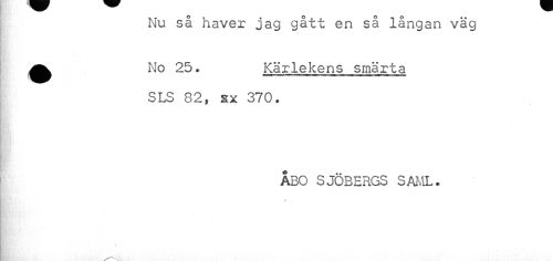 //// Nu så haver jag gått en så långan väg //// iNo 25. Kärlekens smärta //// SLS 82, ex 370. //// ÅBO SJÖBERGS SAML. ////