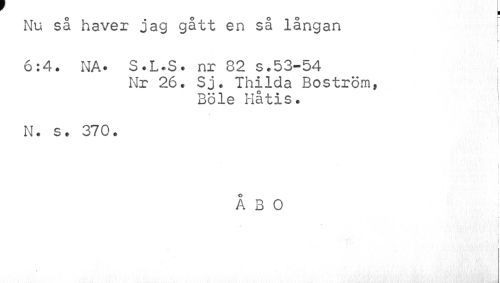 //// Nu så haver jag gått en så långan : //// i //// i //// 6:4. NA. S.L.S. nr 82 s.53-54 //// Nr 26. Sj. Thilda Boström, //// Böle Håtis. //// •I //// N. s. 370. //// | //// t i //// t //// i //// ÅBO //// V //// t « //// f i //// ' « ////