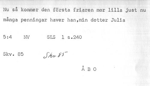 //// Nu så kommer den fcrsta friaren mor lilla just nu många penningar haver han,min dotter Julia //// 5:4 NV SLS 1 s.240 //// Skv. 85 //// ÅBO ////