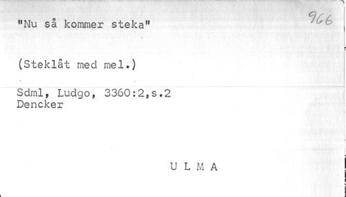 //// Cjf //// /"Nu så kommer steka" u //// ¦ //// (Steklåt med mel.) //// Ti //// Sdml, Ludgo, 3360:2,s.2 — | //// Dencker //// l i //// * • i //// i . ji ¦imår^^WMa Mfe i //// f //// L //// : r //// t i //// U L M A | //// I //// E ////