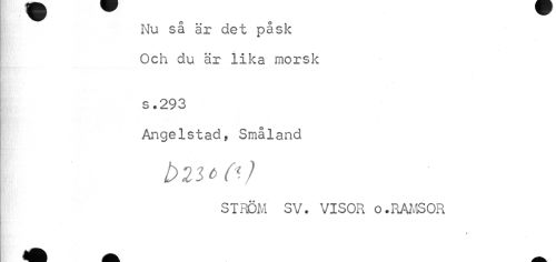 //// Nu så är det påsk Och du är lika morsk //// s .293 //// Angelstad, Småland //// biioN //// STRÖM SV. VISOR o.RAMSOR ////