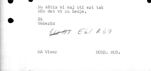 //// Nu sätta vi maj uti ert tak Hör det vi nu bedje, //// ^ Veberöd //// 4 '6 f //// ¦ //// HA Visor NORD. MUS. ////