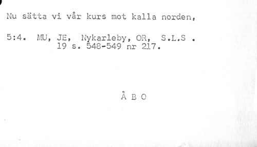 //// Nu sätta vi vår kurs mot kalla norden, //// 5:4. MU, JE, Nykarleby, OR, S.L.S . //// 19 s. 548-549 nr 217. //// ÅBO ////