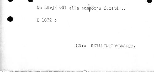 //// Nu sörja väl alla scmfeörja förstå... 41 E 1832 o //// KB:s SKILLINGTRYCKSREG. ////